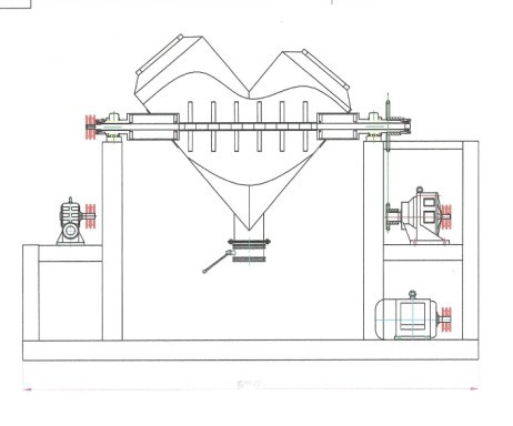 機器原理與結構: 本設備吸取國外同類產品的優點進行設計,利用混料機二圓柱筒長度不相等,行成不對稱,當混料機轉動時物料從分解到組合,從組合到分解,由 于物料平面不同,也有橫向力,又推動物料進行橫向交流,每轉動一圈橫向力約使25%的物料從一個桶流向另一個桶,這樣物料橫向徑向混和,分解組合相互進 行,使物料達到非常均勻的混合效果. 本機還可根據用戶需求加裝強制攪拌裝置、物料加濕系統、氣體保護裝置。 適用于物料流動性良好、物性差異小的粉粒體的混合,以及混合度要求不高而又要求混合時間短的物料混合,由于V型混合容器內的物料流動平穩,不會破壞物料原形,因此V型混合機也適用于易破碎、易磨損的粒狀物料的混合,或較細的粉粒、塊狀、含有一定水份的物料混合之用,廣泛應用于制藥、化工、食品等行業。 技術參數: