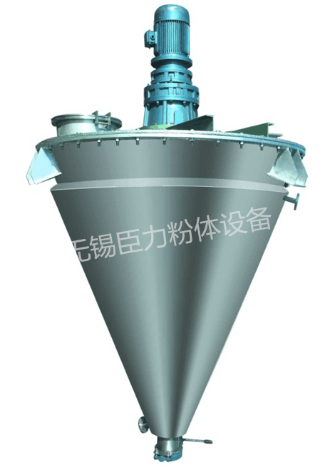 工作原理: DSH系列混合機筒內兩只非對稱螺旋自轉將 物料向上提升,轉臂慢速公轉運動;使螺旋外的物料,不同程度進入螺柱,從而達到全圓周方位物料的不斷更新擴散,被提到上部的兩股物料再向中心凹穴匯合,形 成一股向下的物料流,補充了底部的空缺,從而形成對流循環的三重混合效果。混合機兩非對稱螺旋的快速自轉,物料向上提升、形成兩股非對稱沿筒臂由下向上的 螺旋物料流。轉臂帶動的螺旋公轉運動,使螺旋外的物料不同程度進入螺柱包絡線內,一部分物料被錯位提升,另一部分物料被拋出螺柱,從而達到全圓周方位物料 的不斷更新擴散,被提到上部的兩股物料再向中心凹穴匯合,形成一股向下的物料流,補充了底部的空穴,從而形成對流循環。由于上述運動的復合,物料在較短時 間內獲得了均勻混合,混合程度較高。